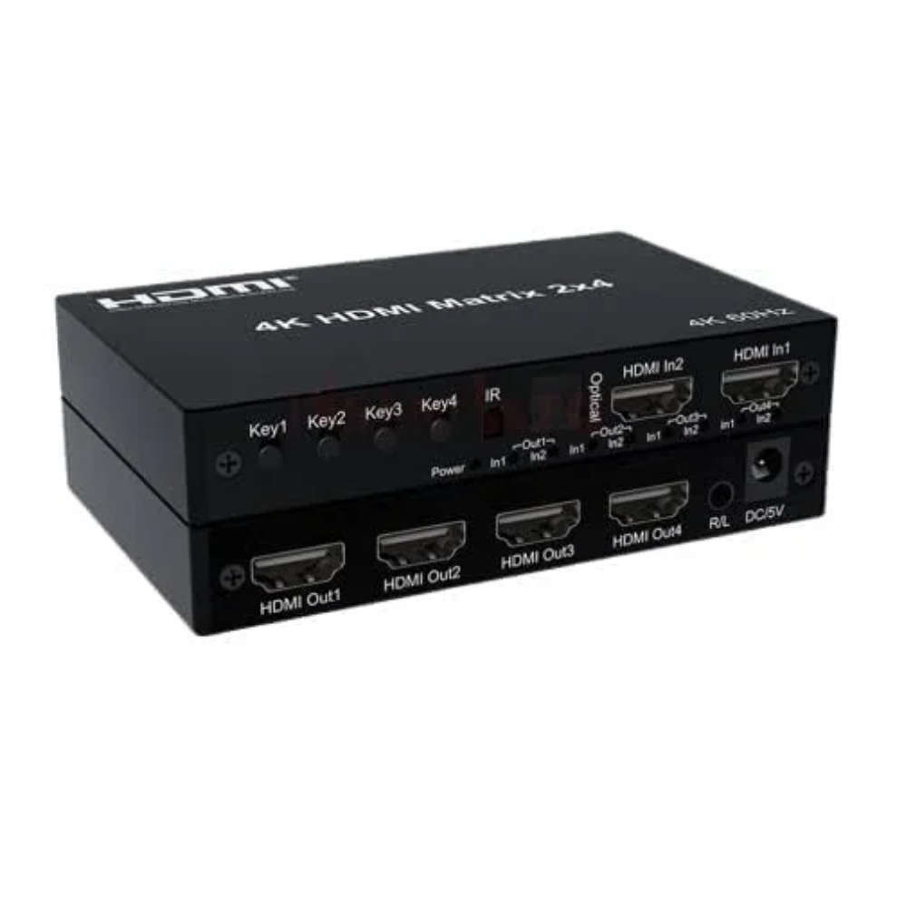 🖥️ HDMI Matrix Switch 2×4 – 2 Input 4 Output | 4K@30Hz | IR Remote | Splitter + Switch Combo
